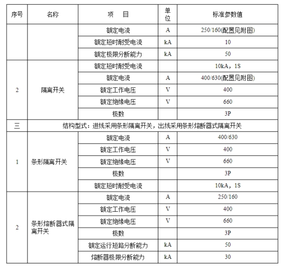 2.2.3對于出線選用塑殼斷路器型式的分支箱應當滿意以下要求:斷路器的材料應具有耐非常熱和火的才能。斷路器選用3極,配備電子脫扣器,不帶失壓脫扣器,斷路器一起具有隔絕功用,表面并應有明顯的標明“分”、“合”狀況的標志。