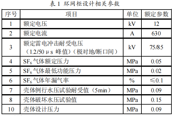 環網柜殼體形狀不同有箱式和筒式之分。由于箱式結構有利于完成進出線.配電方案的施行,可是箱式在承受壓力的局限性,使箱體不能夠承受太高的壓力。下面介紹一種環網柜氣箱的規劃辦法。與氣箱規劃有關的環網柜額定參數見表1。