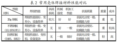 環網柜焊接氣箱常用資料首要有20g鋼板、不銹鋼板(1Cr18Ni9Ti)、防銹鋁板(5A05,5052)等。其功用對比見表2。