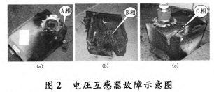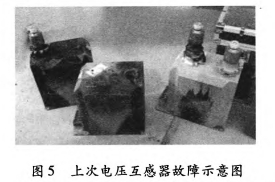 2011年3月30日0:38,35kV垣潔線、35kV垣宏回A、B相電壓互感器擊穿,如圖5所示;2012年3月26日19:7:58,35kV垣潔線56號線路電壓互感器A、B、C相損壞,A、B相有炸裂現象。